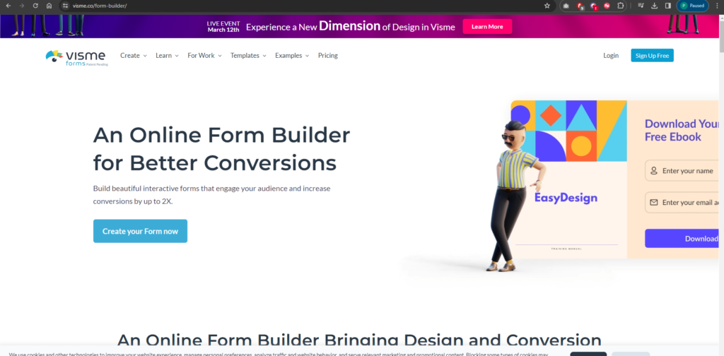 - Create a Visme Account: If you haven’t already, sign up for a Visme account. You can do this by visiting the Visme website and clicking on the “Sign Up” button. You can choose a free or paid plan depending on your needs.