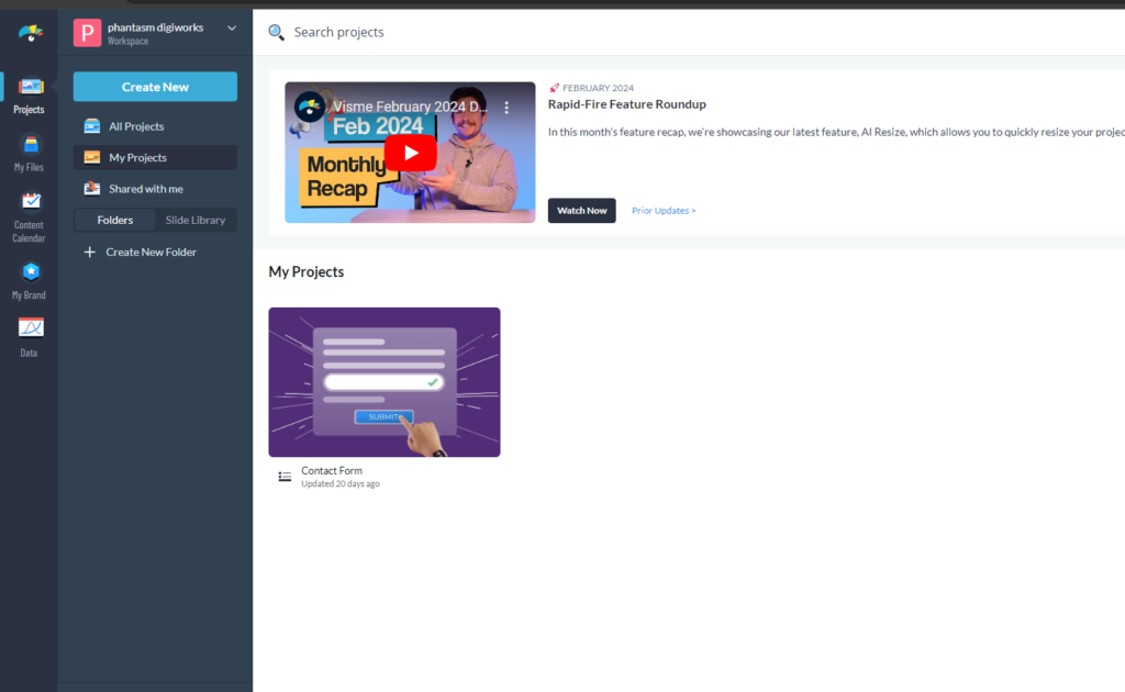 - Access the Forms Tool: Once you’re logged into your Visme account, navigate to the dashboard and select the option to create a new project. In the editor, look for the “Forms” option in the left sidebar menu. Click on it to access the forms tool.