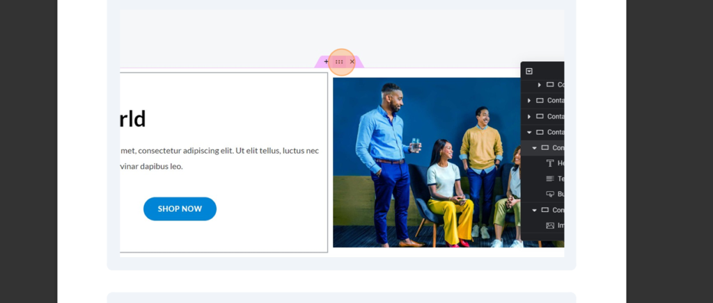 2.select the section to add the particle animation
