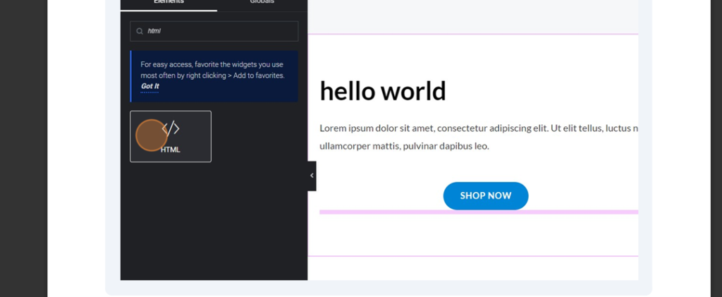 3.add html widget to the container