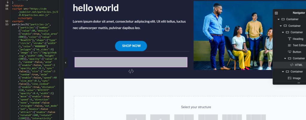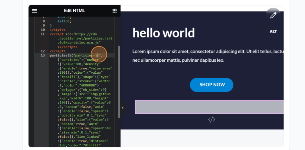 4.paste the following code in the html section
